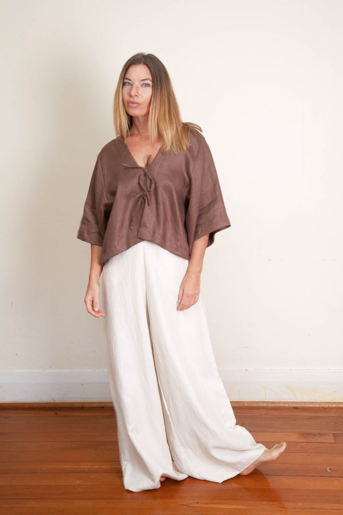 Can be paired with matching Moni Pants in Chocolate linen twill.