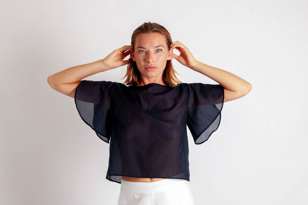 With flattering 2 piece curved flirty sleeve detail, and just the right length of crop.